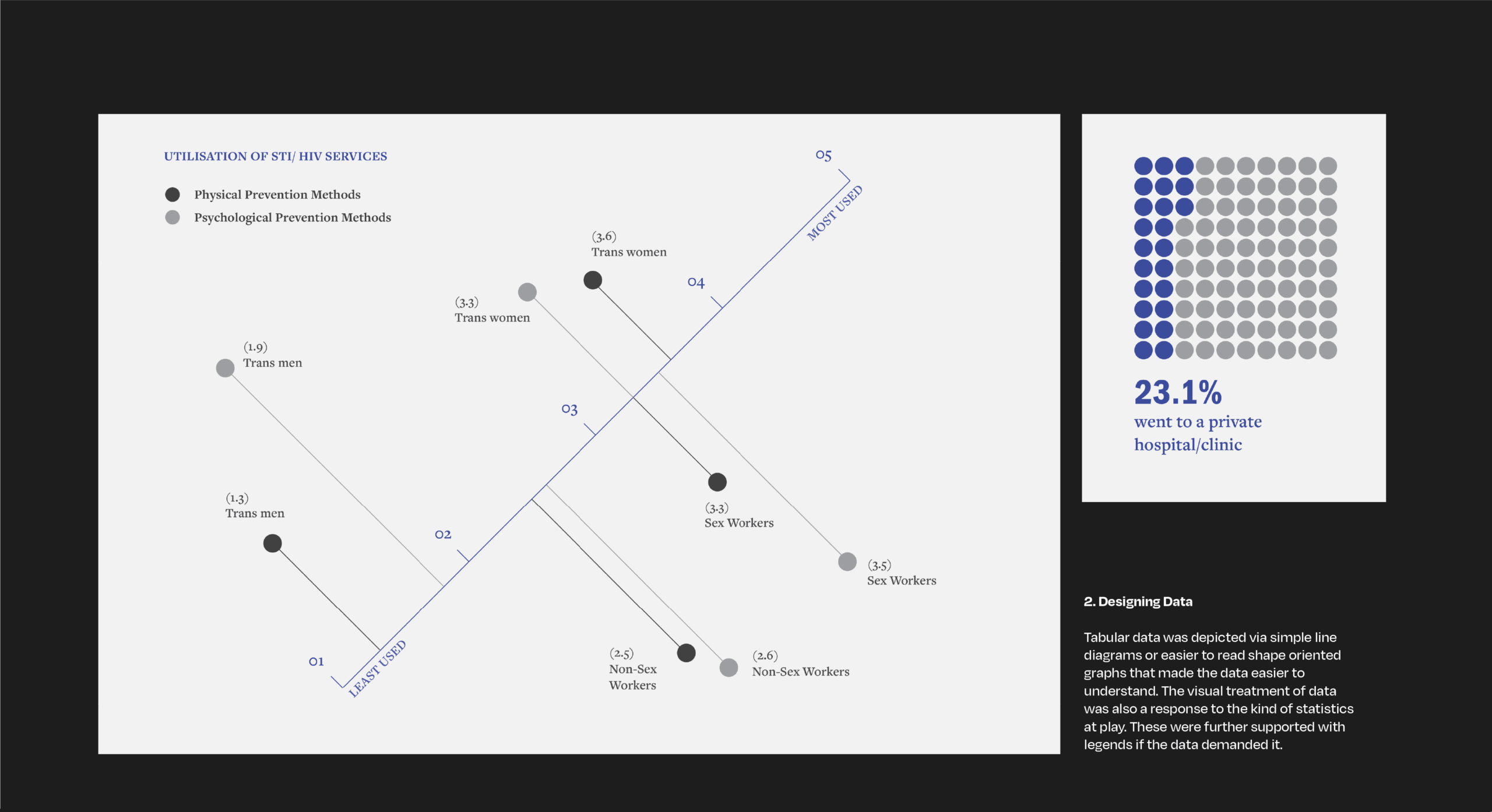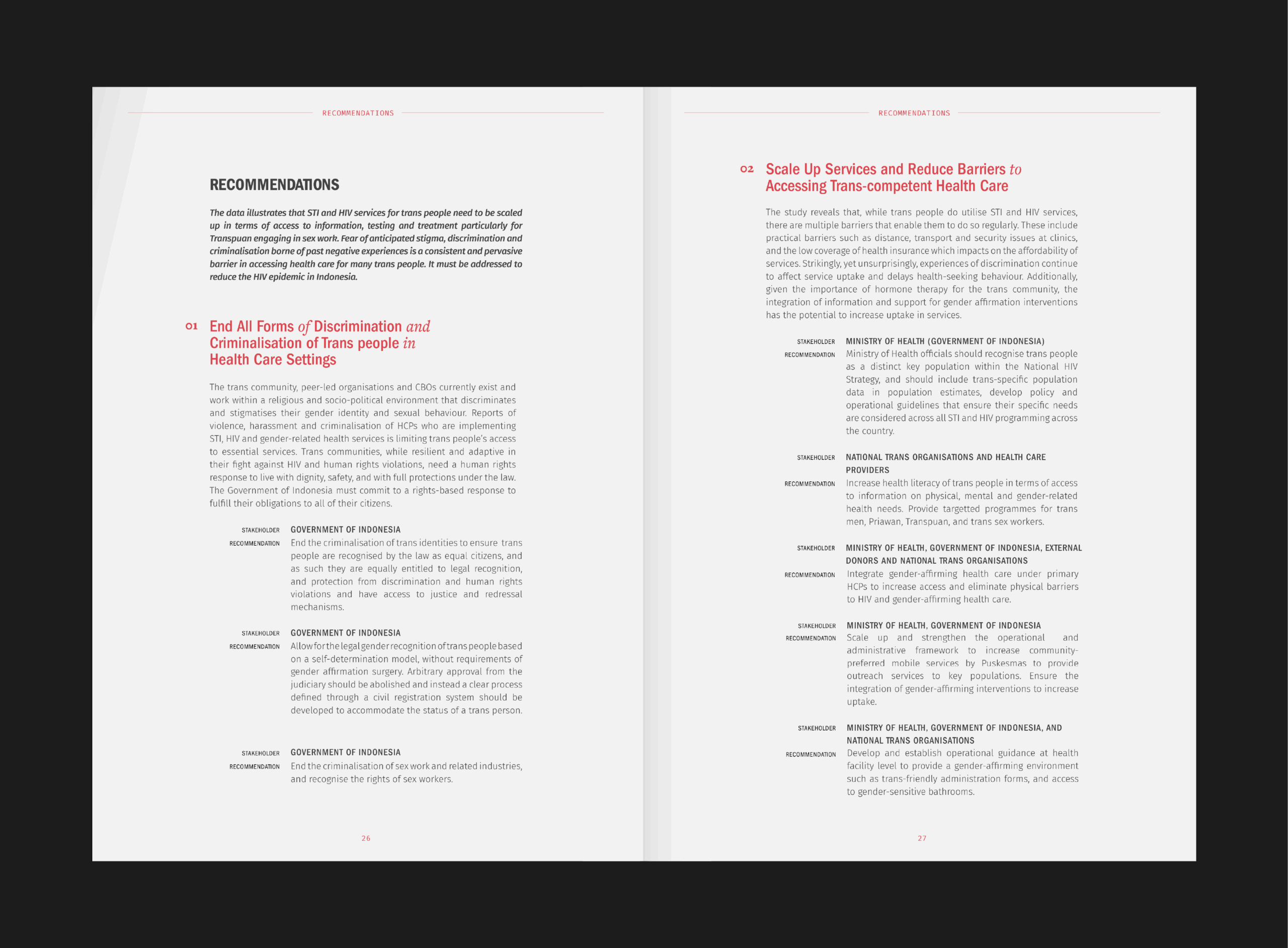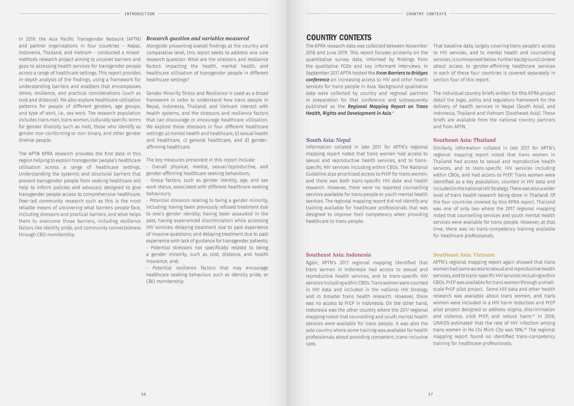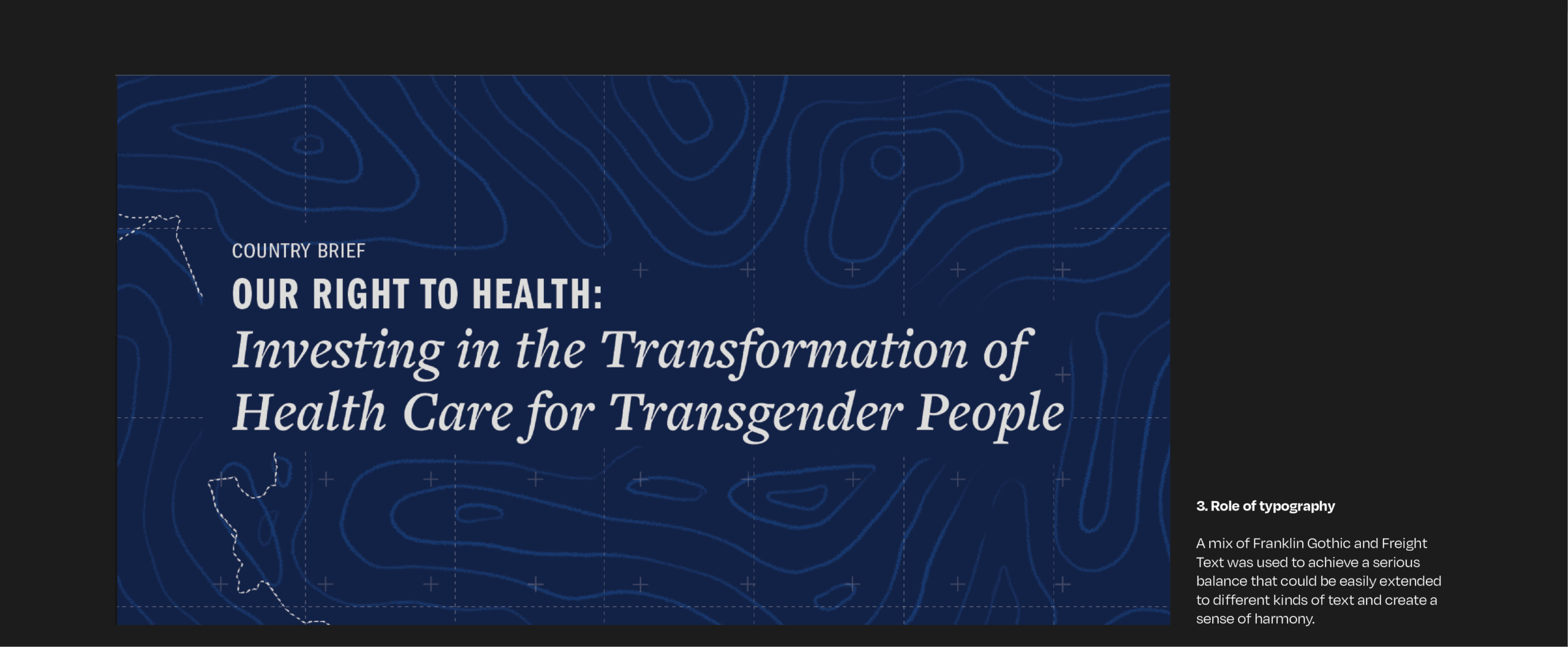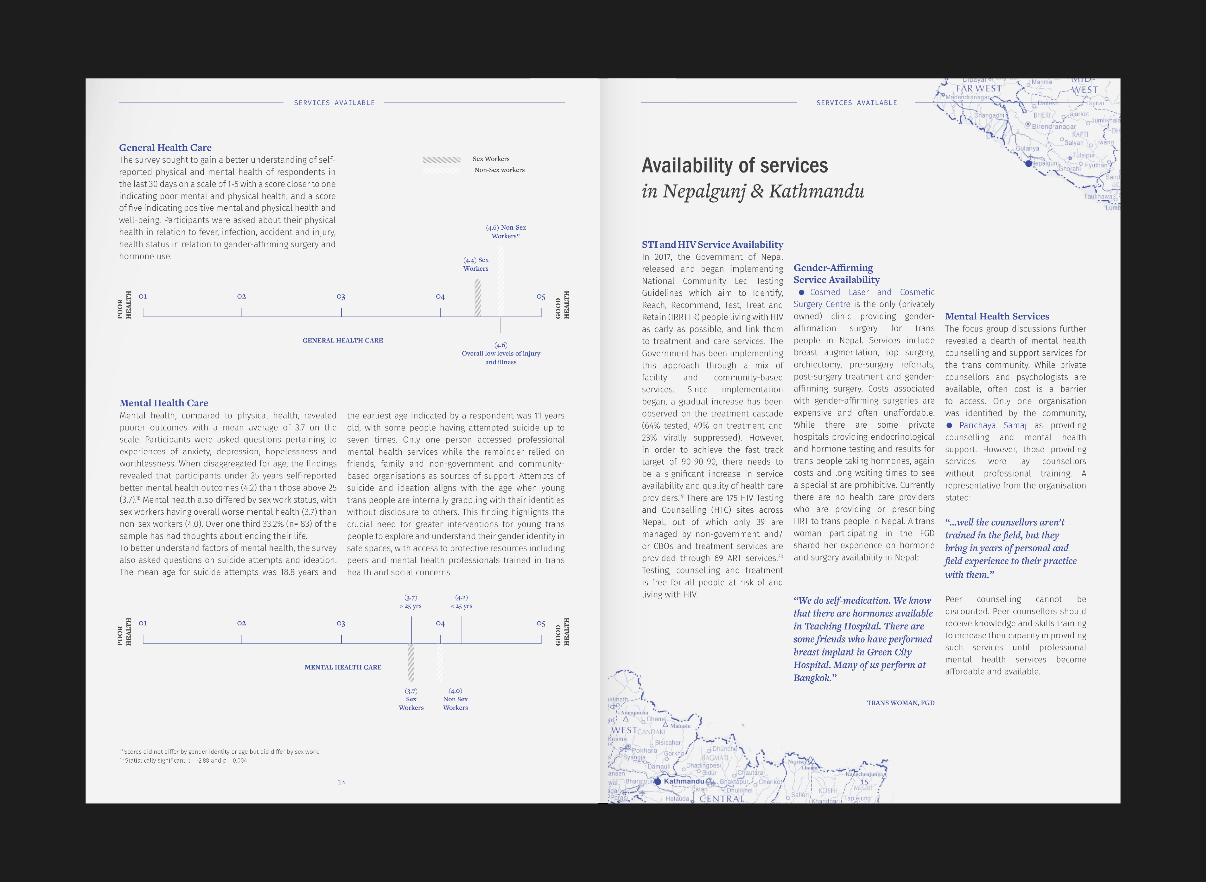 The Asia Pacific Transgender Network was formed to champion the health, legal and social rights of trans women. The brief was to design a set of four country reports and a regional report addressing the health implications of Transphobia and discrimination prevalent in South East Asia. A visual system was created across the reports to make the data rich content easier to read and understand.
