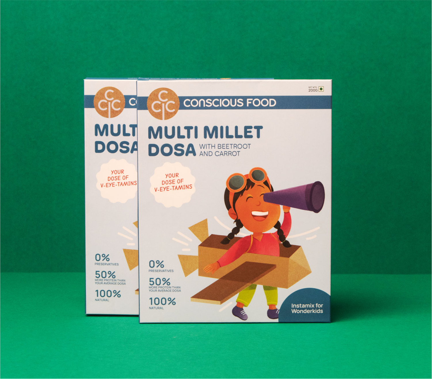 The products featured bold, colourful, appetising food illustrations that would indicate what’s inside the boxes and jars. These were deliberately made extra saturated to stand out on shelves and look extra delicious.