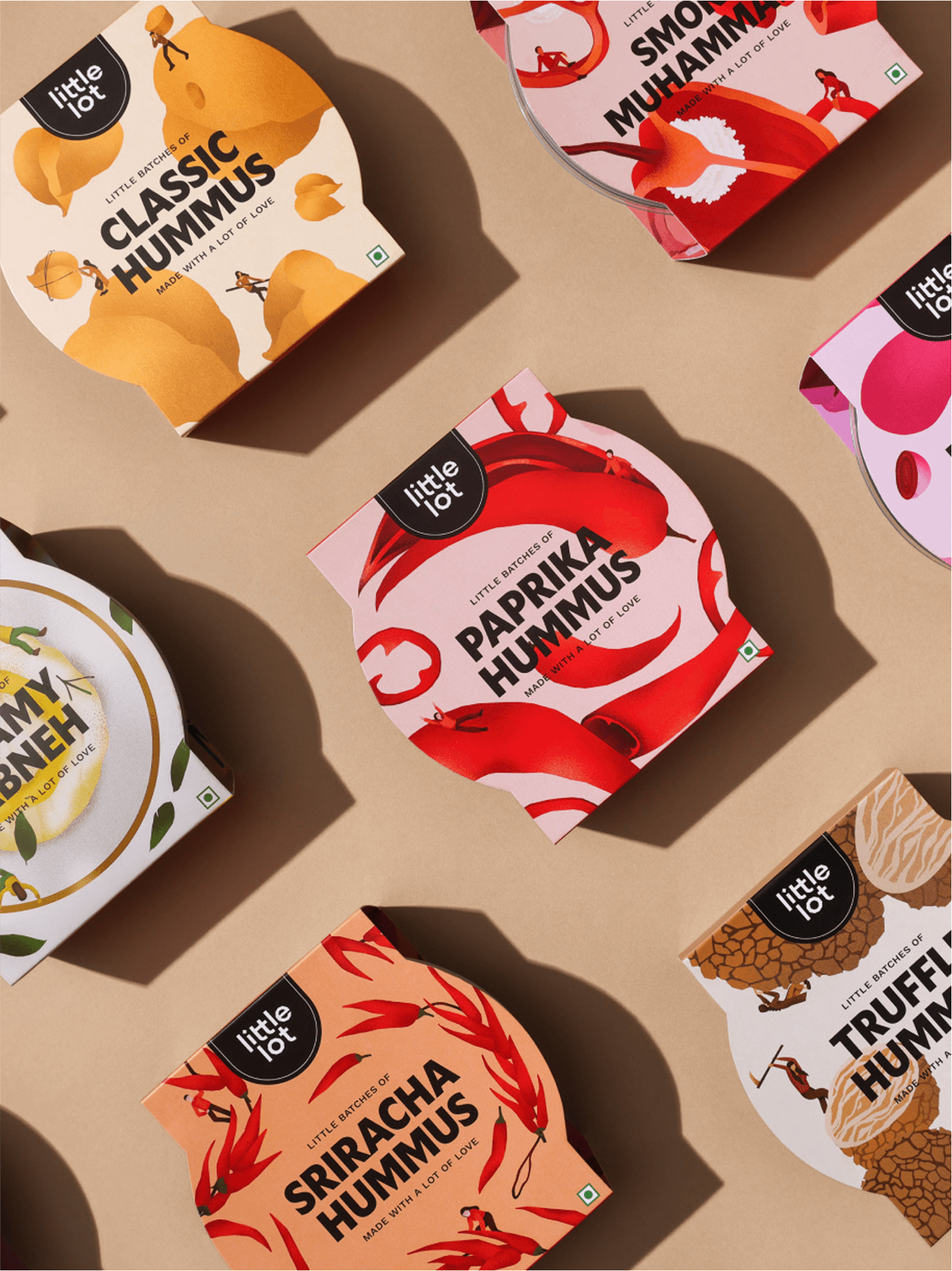 Little Lot’s brand name came about from the idea of small batch- high value products. As there were several food categories like sauces, dips, hummus, butters and breads, the brand had to work across mediums and contexts.