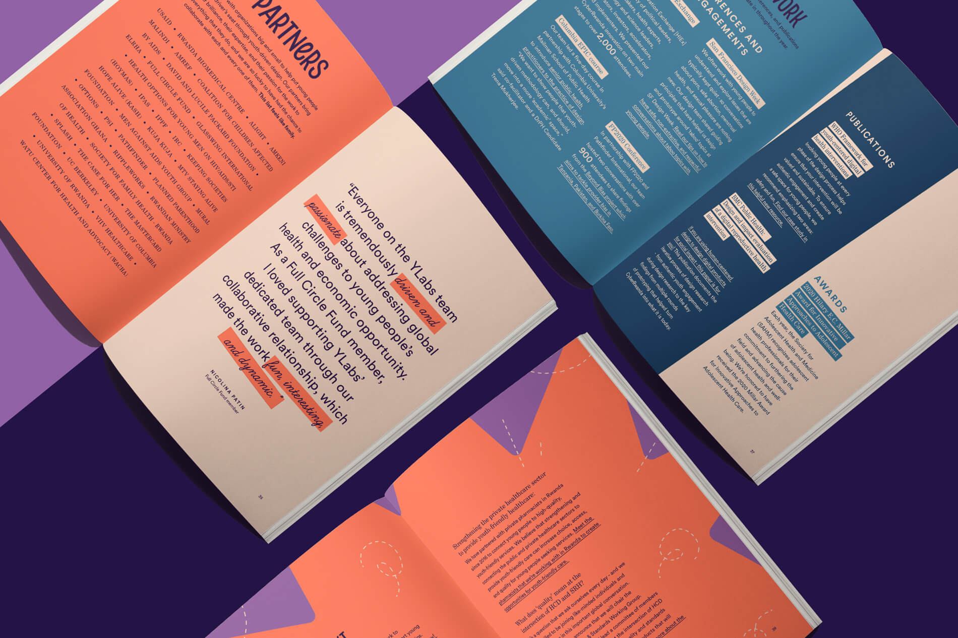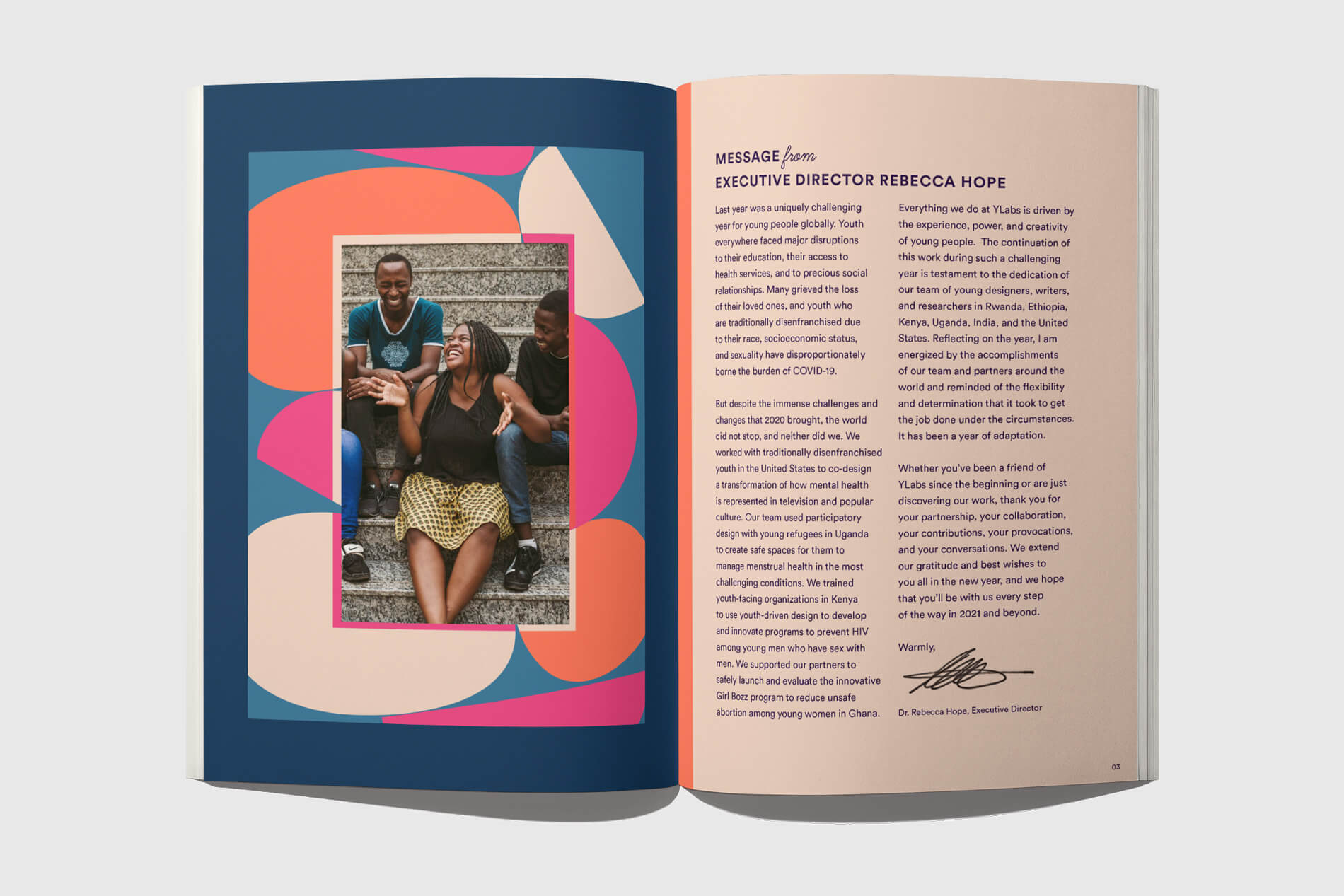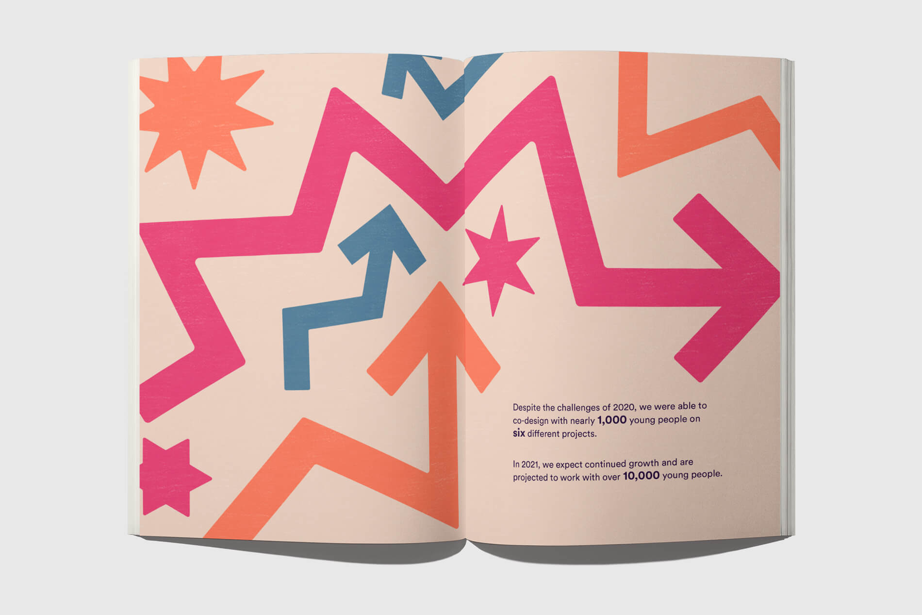 We created a vibrant and dynamic Annual Report for them that a younger audience would like to engage with. Space, constraint, adjusting and flexibility were the core ideas for the visual language and a color palette was created to complement their original branding.