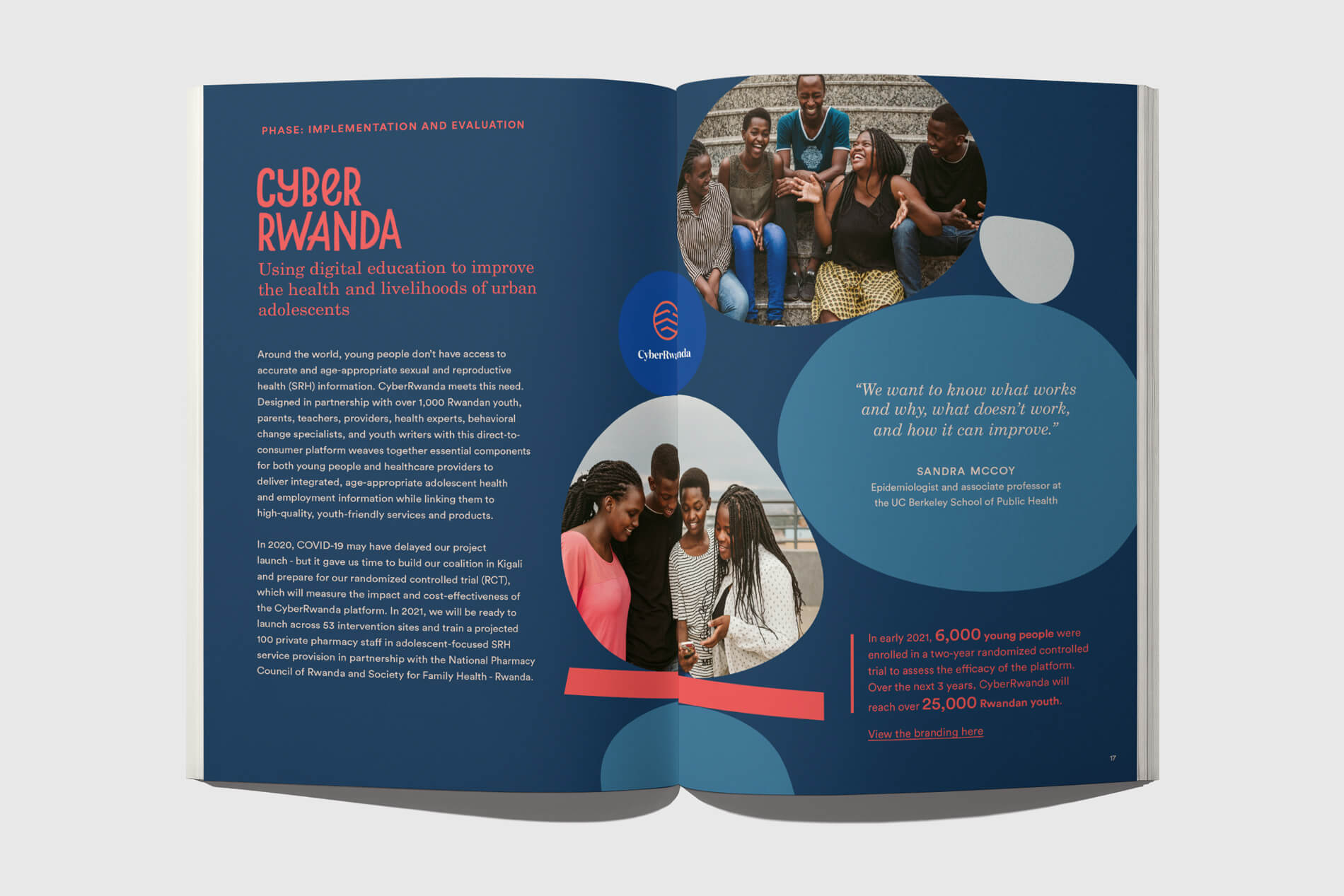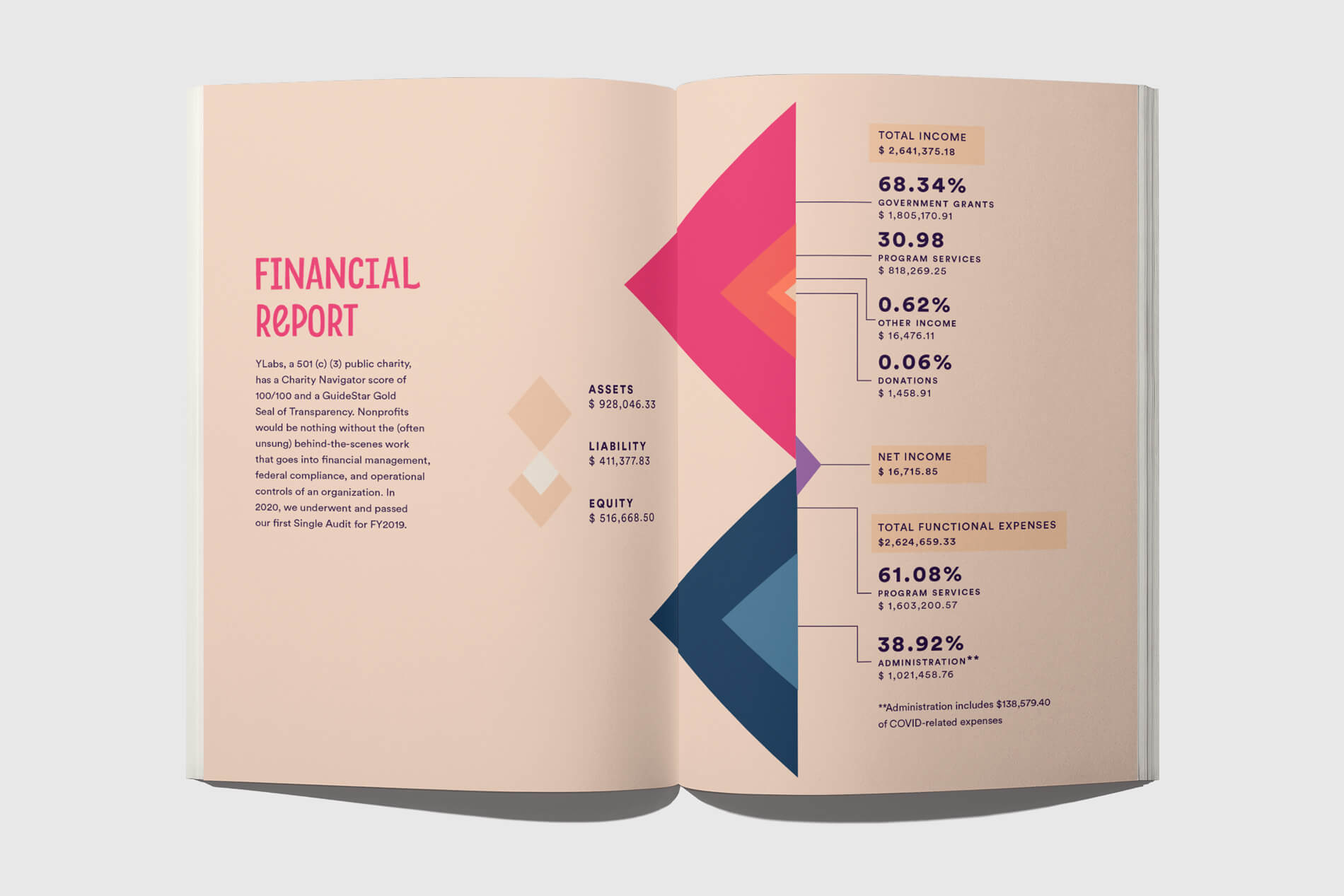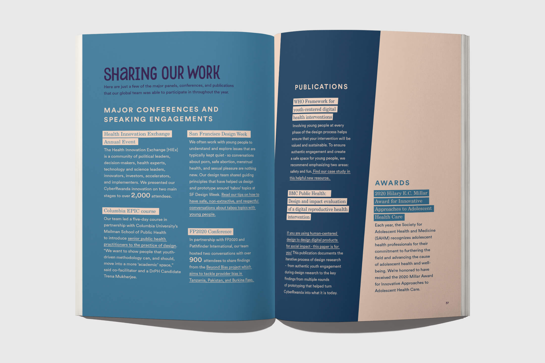 We created a vibrant and dynamic Annual Report for them that a younger audience would like to engage with. Space, constraint, adjusting and flexibility were the core ideas for the visual language and a color palette was created to complement their original branding.